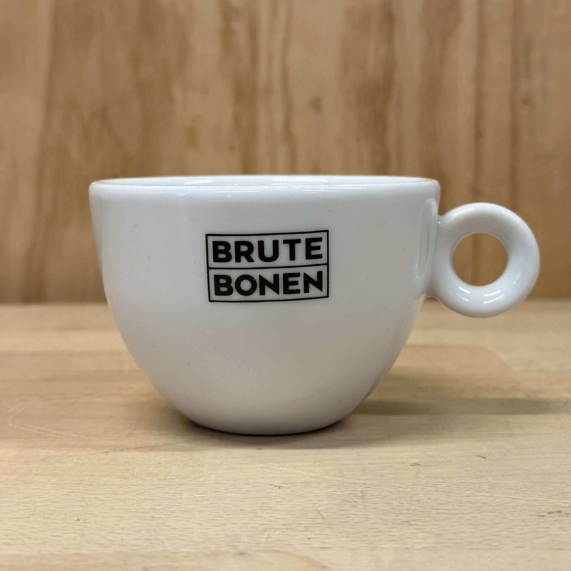 Set van 2 cappuccinokopjes & schotels met klassiek Brute Bonen logo.