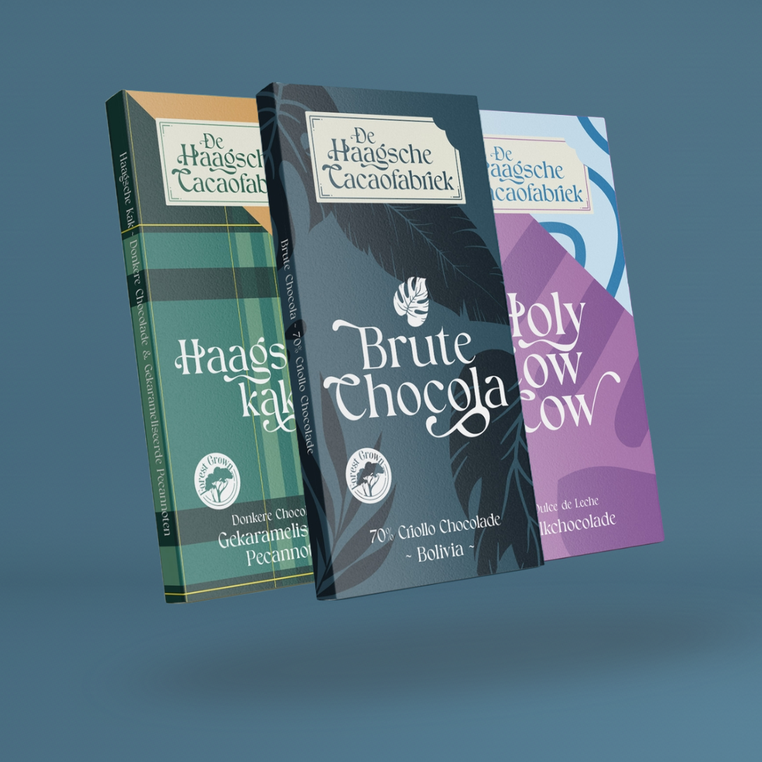 Drie willekeurige repen van De Haagsche Cacaofabriek in één smakelijk pakket. Perfect om zelf te ontdekken, of om iemand anders mee te verrassen.